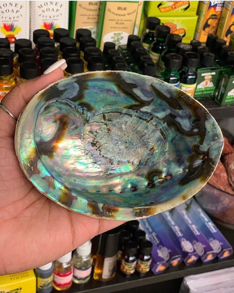 Abalone shells are often used as tools to perform smudging rituals. ... Abalone shells are also a gift from the sea and, thus, symbolically represent the water element while the unlit herbs represent earth, the lit herb represents fire and the smoke represents air.