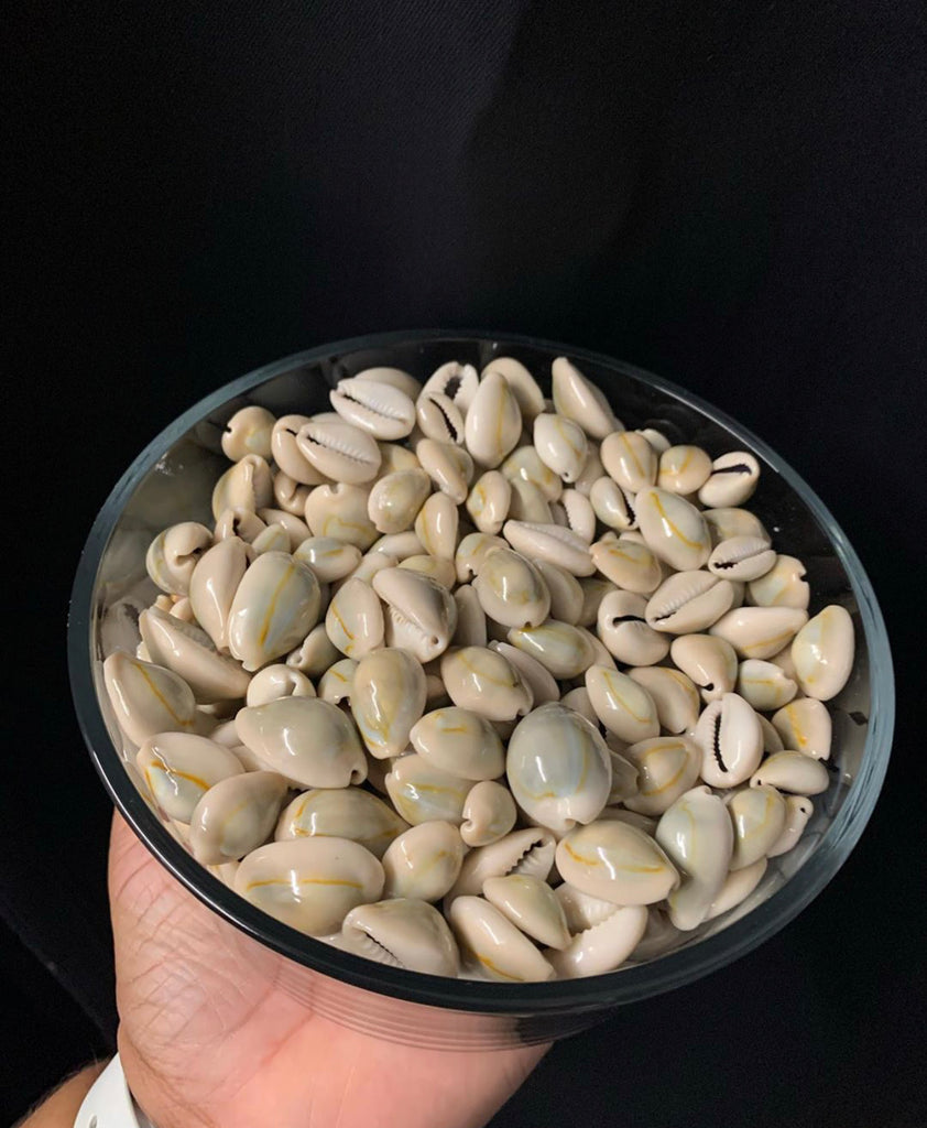 The sacred cowrie shell, found in the islands of the Indian Ocean, was treated with special importance throughout Africa with many uses and meanings. Cowrie Shells represent abundance and fertility.