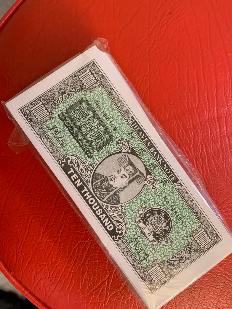 Ancestor money is burned as an offering to our ancestors. 5 pieces.