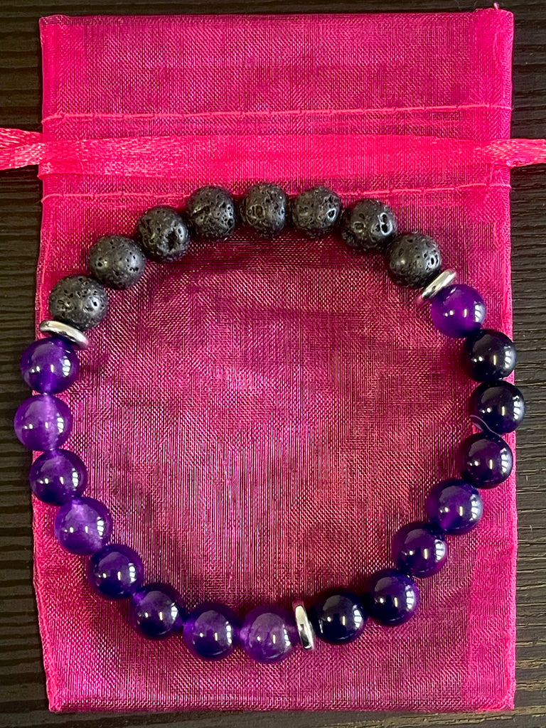 Lava stone is grounding because it comes from volcanic earth energy. The porous texture is why it is also used as an oil diffuser. Add one drop of lavender for calm, peppermint for focus, or frankincense for spiritual clarity, then let it absorb and wear it throughout the day.
