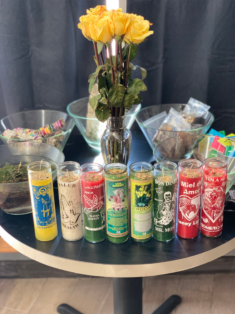 All candles are fixed with oils, herbs, minerals, and intention prayer.