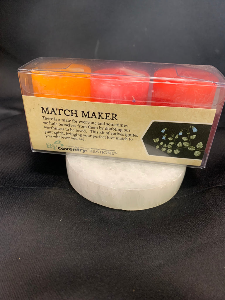 A triad of Attraction/Love Love's Enchantment and Energy and Will. Votives burn for 10 hours There is a mate for everyone and sometimes we hide ourselves from them by doubting our worthiness to be loved. This kit of votives ignites your spirit bringing your perfect love match to you where ever you are The divine light of my soul is a beacon that draws my love to me. There is a match for my spirit a partner to celebrate life with and I bring them to me now