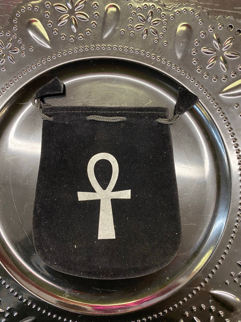 Invoke mystery and abundance with the Egyptian symbol for life while carrying what's precious to you in this velvet bag.