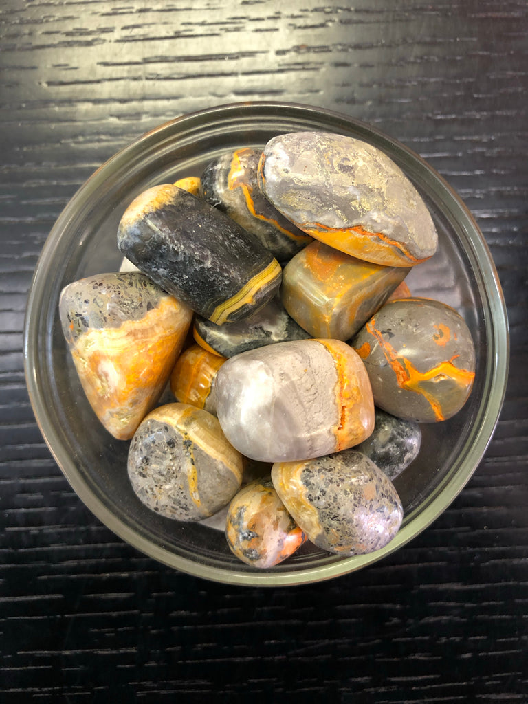Bumble Bee Jasper activates the Sacral and Solar Plexus chakras, enabling you to accept change, find new opportunities, increase your self-esteem and make decisions without relying on emotions. It reminds you that the possibilities are limitless because the only limits are the ones you put on yourself. Connecting with its energy helps you embrace a more positive disposition and have confidence in all that you are doing. The bumble bee jasper properties remove any blocked energy within these chakras to bring forth your creative talents and increase your motivation and willpower. It helps you to manifest your highest good.