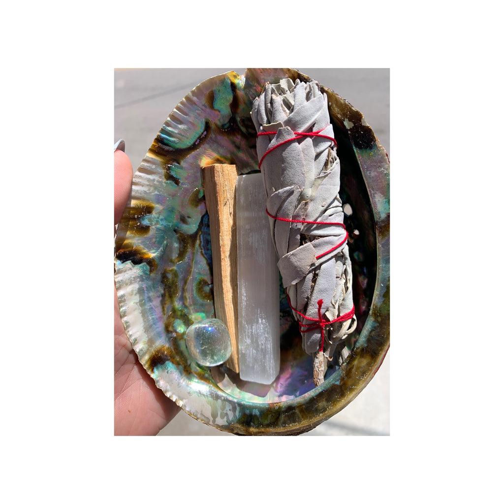 Sage smudge, Palo Santo , Abalone Shell , rose quartz bundle.
