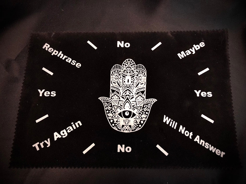 Velvet Pendulum Mat for Pendulum, Dowsing, Scrying, Divination, and Spirit CommunicationThis embroidered velvet pendulum mat is the perfect complement to find the answers you seek with your pendulum. Size: 11.75" x 7.75”
