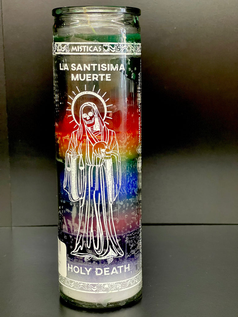 Call on La Santa Muerte to balance justice love protection luck healing power and cleansing. Each color activates a different blessing. Light with faith ask with respect.