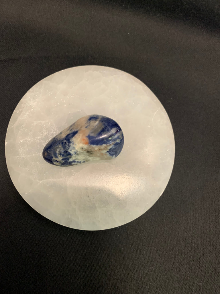 Sodalite is an exciting stone as it connects three energy centers (also known as chakras): the heart, the throat, and the third eye. This rare combination is likely to awaken your capacity to see things as they are, with a calm heart and without any of the mind's deceptions.